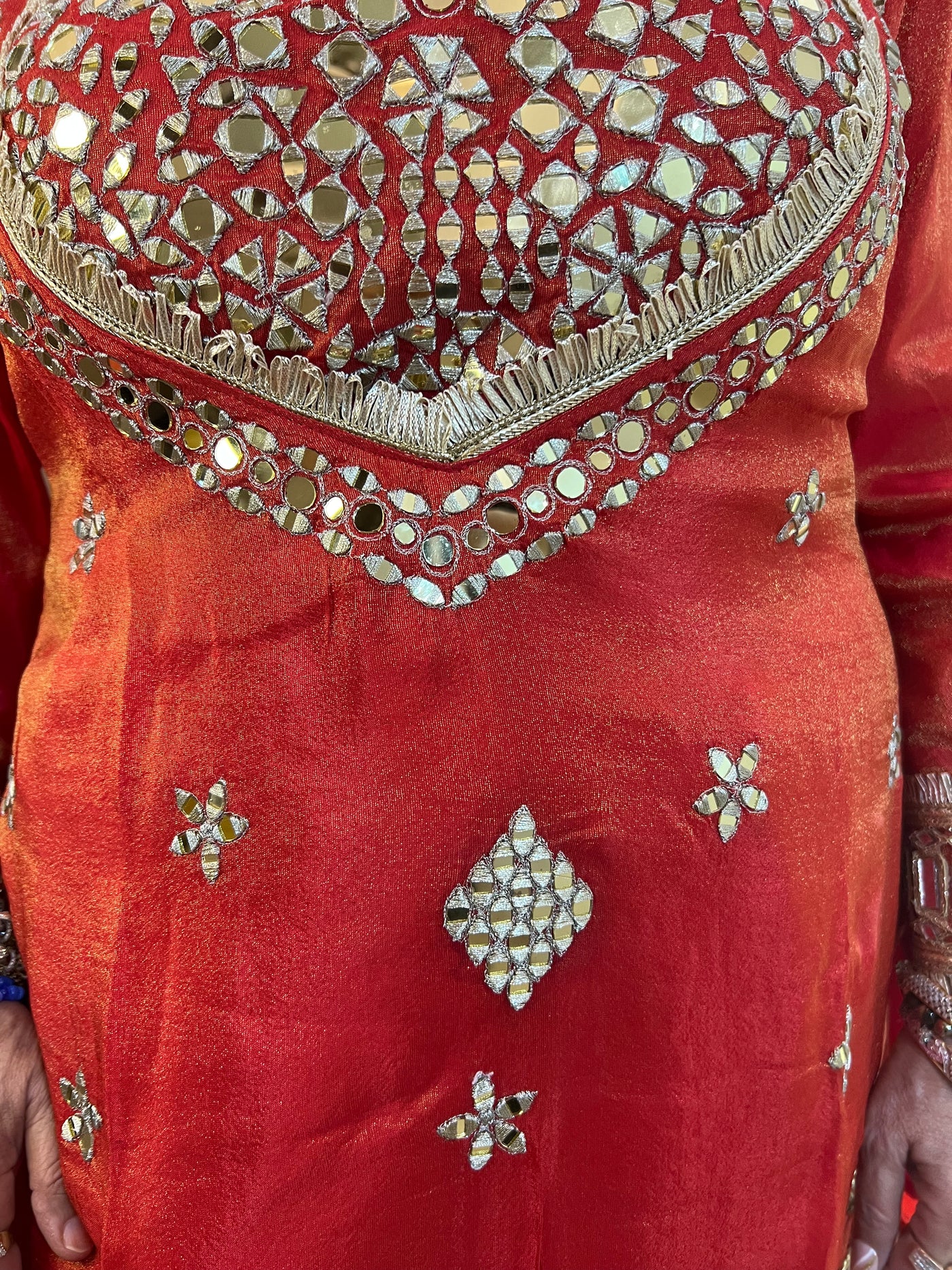 Dupatta: A necklace-style dupatta adorned with mirror work, adding a touch of glamour that elevates the entire look.