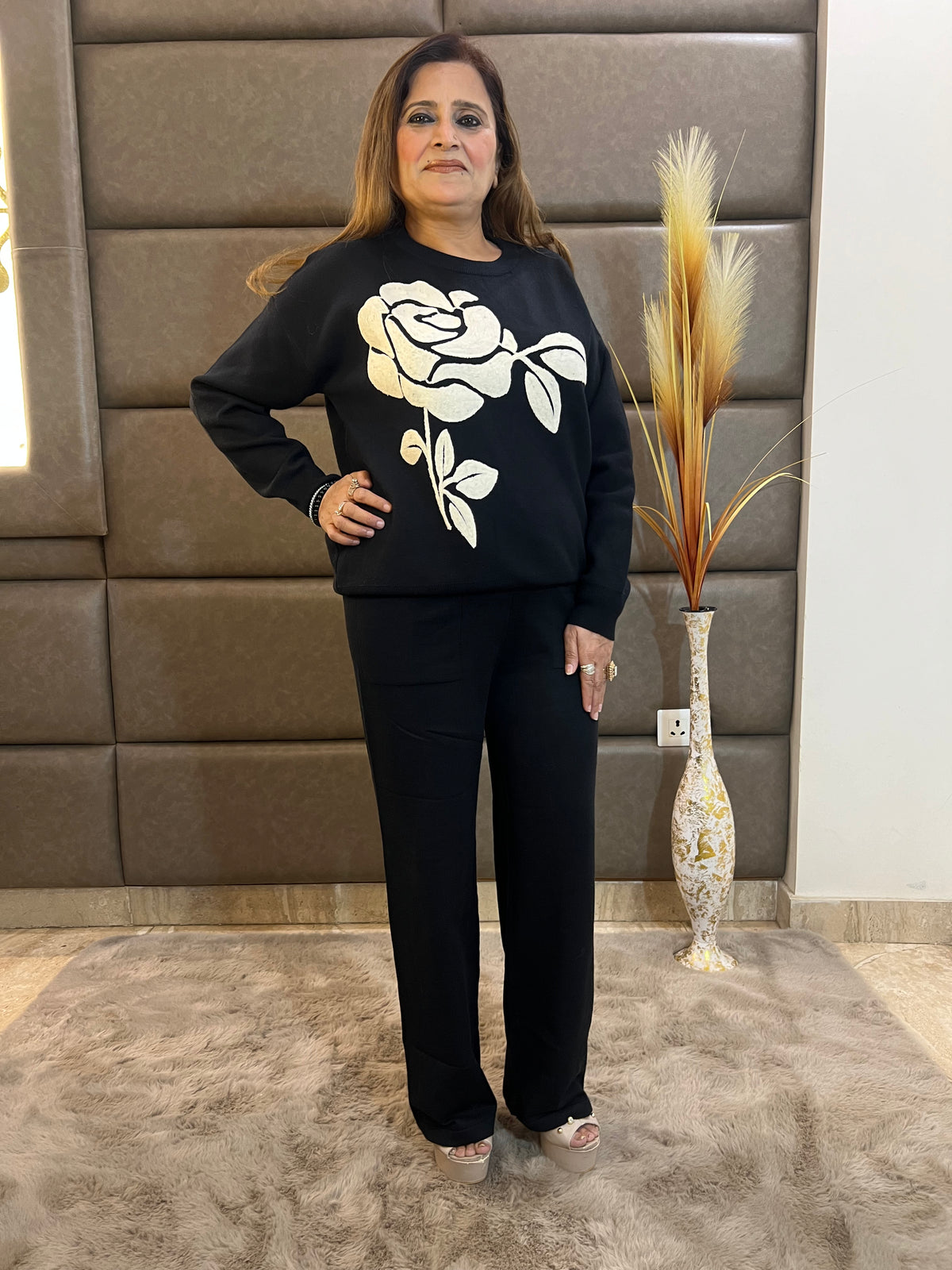 Cordset: Crafted from premium, ultra-soft wool, this elegant cordset combines refined comfort with timeless sophistication. The shirt features exquisite thread embroidery that adds a subtle yet striking artistic charm, while the pure wool bottoms are designed with practical pockets for everyday ease. Its free-size silhouette ensures a relaxed, flattering fit, making it a perfect choice for winter outings, festive gatherings, or elevated casual wear.